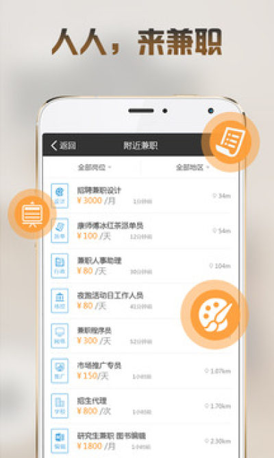 人人兼职是一个满足在校大学生,空闲上班族和企业兼职需求,并为其提供满意可靠服务的互联网兼职的垂直应用。以众多优质兼职资源为依托,为兼职者提供人性化,个性化,专业化的兼职信息服务,让兼职者和优秀企业都能及时解决个人所需达成合作。致力完善自由职业者服务交易,改善国内求职者,失业者的现状,让每一次兼职变得更便捷,更愉悦!