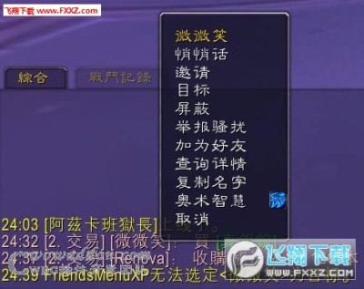 玩家菜单增强插件FriendsMenuXP,游戏中右键点击聊天窗中的玩家链接,以及右键点击好友、查询、工会列表中的人名后,会出现一个右键菜单。