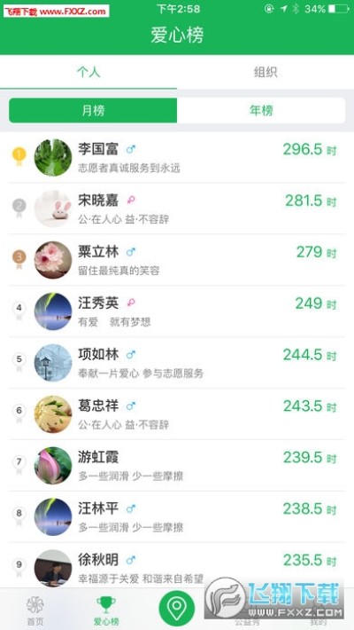 志愿者以及队伍排名,依据参加志愿者的次数时长等进行排名。