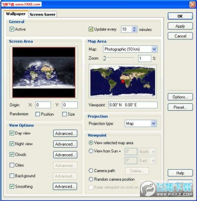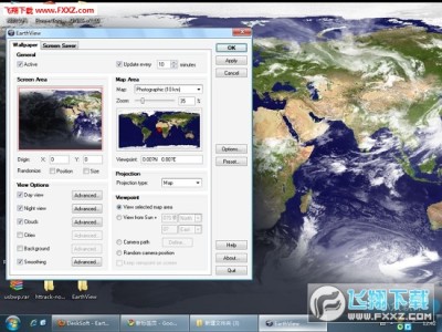 EarthView是一个相当有趣的动态桌面背景及屏幕保护程序软件,电脑屏保图片能让我们在桌面上直接看到从外太空鸟瞰地球的景观,包括日光照射区及夜晚的黑影区。EarthView软件能产生高达 1600x1200 高品质解析度的画面,而显示模式可以地图 (map) 或地球仪 (globe) 的方式呈现。其它的显示资讯还包括地理疆界、国界、地形、城市分布…等,都能由使用者自行修改选项及设定参数,达到最佳的观看效果。