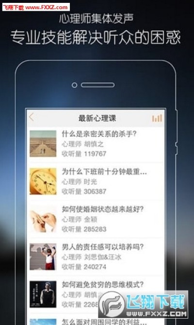 我们手机通讯录名字密密麻麻,深夜却只能孤独地流泪;我们在高楼林立的城市游走,心灵却居无定所;我们在越来越丰富的物质生活中闯荡,却迷茫看不到未来……在你心情低落、绝望,准备放弃所有的时候,打开心理FM,你的心情会发生改变。