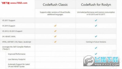 CodeRush有两个版本,分别是CodeRush Classic和CodeRush for Roslyn,CodeRush Classic支持VS 2015之前的旧版本,CodeRush for Roslyn支持最新的VS 2017,其它区别如图所示