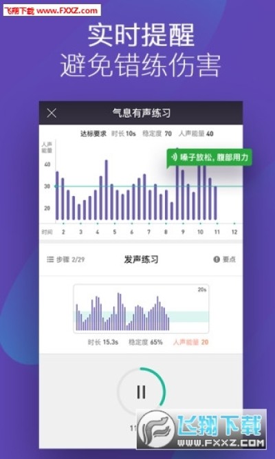 毫秒级语音提示:支持真人语音陪伴练习,毫秒级识别反馈练声质量,随时调整最佳状态(全行业独有)