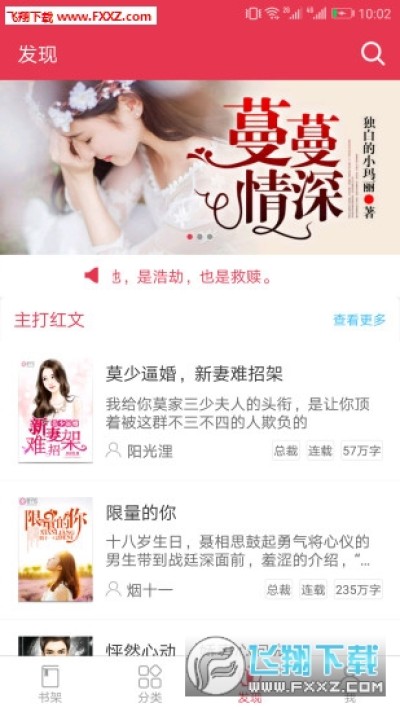 吾里书城是一款拥有海量精品原创版权,集言情、玄幻、都市、总裁、悬疑等众多类型的小说阅读APP,编辑精心挑选推荐,满足各类读者对书籍的需求。支持全本及章节下载,让您随时随地感受阅读乐趣。阅读页面可自行调节设置,达到最佳阅读效果。贴心的功能设计,达到最舒适的阅读体验。