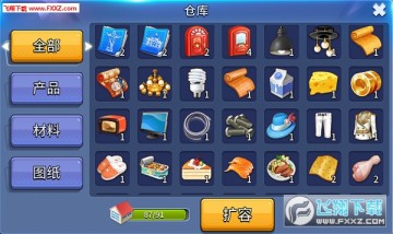 仓库是储存物资、打包材料的聚集地,仓库的大小很大程度上影响了生产资料的输出以及储备等,下面就以《完美城市》手游仓库系统为例分析,仓库里可以放置产品、材料以及图纸等物资。