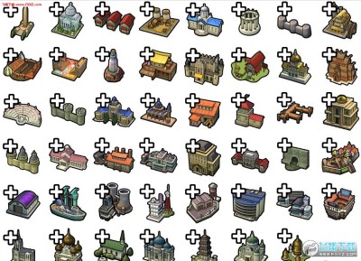 每个建筑升级都有相同的图标作为基础建筑,加上一个独特的加号。