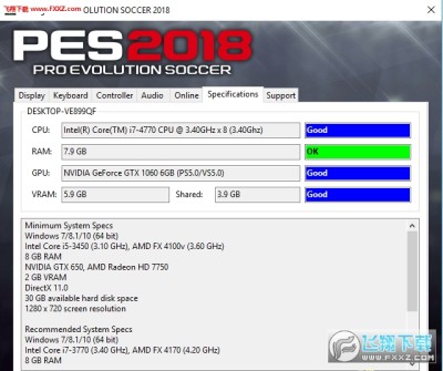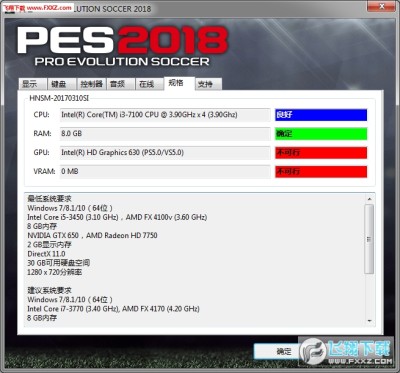 规格就是检测你的PC配置对实况2018的支持性