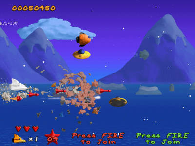 可爱卡通的画风以及流畅的操作感吸引住了,最近这款游戏的新版还登陆PSP平台,随着游戏的成功,制作商又推出了它的2代游戏,在粘土战机2中,你将会继续驾驶F-27战机穿越地球,在5个不同的世界和外星侵略者激战。另外游戏支持鼠标、键盘、手柄3种模式。你可以和你的2个队友一起保卫地球。