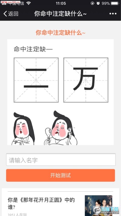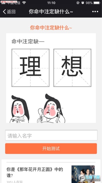 最近大家的朋友圈你命中缺什么的图片刷屏了,今天给大家分享朋友圈你命中缺什么二维码app,想知道你命里缺什么的朋友赶紧来试试吧,只要输入名字就可以直接测试的,还支持一键分享,赶紧来朋友圈你命中缺什么二维码app和你的朋友分享一下你命里缺什么。