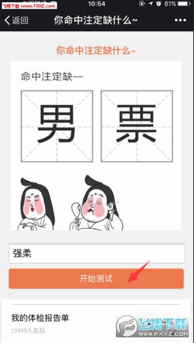 这个时候我们可以看到命中注定缺什么的关键词,长按即可保存图片分享给好友。