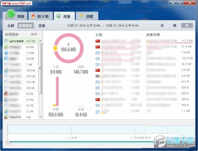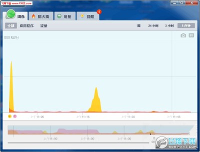 GlassWire 界面简洁,主界面一共四个功能选项卡:图形流量、防火墙、使用情况和警告。图形流量中统计了当前实时的网络流量,细分了全部流量和已经产生流量的程序列表,还能根据不同时间段查看,觉着哪个程序不认识不科学不安全,进入防火墙界面,点击程序名前面的火焰图标,立马灭了它!