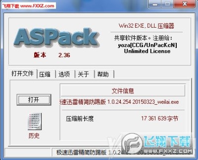 ASPack 是一个功能非常强大而高效的Win32可执行文件程序的压缩工具, 能对程序员开发的32位Windows可执行程序进行压缩,使最终文件减少70%, (ASPack’s 的压缩率高于ZIP文档格式的10%-20%) ASPack 使得Windows 95/98/ME/NT/2000/XP/2003/VISTA/7 下程序和动态链接库的所占空间缩小, 并且降低了网络应用的时间,以及从网络上下载的时间。 它同时也保护了应用程序不受非专业的黑客逆向工程分析。被ASPack 压缩的程序运行起来和以前一样,绝对不会有运行时间的延迟。