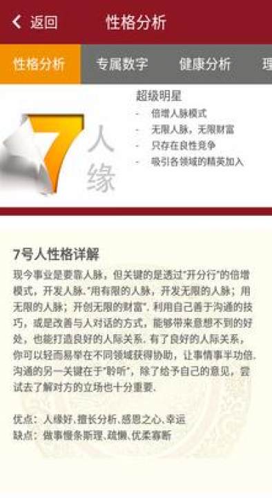 万物数学论软件如果把不同的性格特征冠以不同的数字,你会发现很多小伙伴的数字属性越合得来,互相熟悉的可能性也越大,这个平台可以帮助你分析自己的性格还有各种健康分析以及数字分析等你来看,需要的小伙伴们快来下载万物数学论app体验一下试试吧