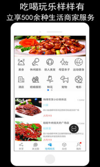 *立享吃美食、看电影、休闲娱乐、丽人、KTV、运动健身、住酒店、去旅行等500余种吃喝玩乐商家服务,吃喝玩乐样样有;