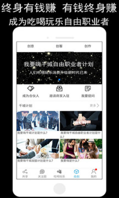 *邀请商家就赚钱、职业自由就是爽、终身分红喜多多