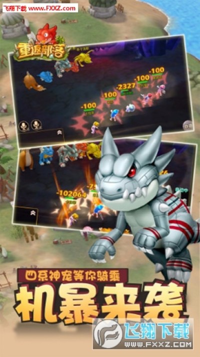 重返部落果盘新版作为一款新颖独特的经典游戏,在重返部落手游中你不仅能深刻的感受到浓郁的远古石器时代气息,而且创新植入的宠物系统也是游戏内的一大亮点,100多种萌宠可以供玩家进行任意选择,同时一些宠物在提供战斗的同时还能充当玩家的坐骑,玩家可以根据自身的喜好和战斗需求来选择培养宠物,极具个人特色的宠物养成有着不错的趣味性。