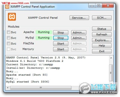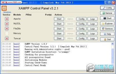最后,通过那些批处理文件或图形界面的“xampp-control.exe”启用不同的服务即可。