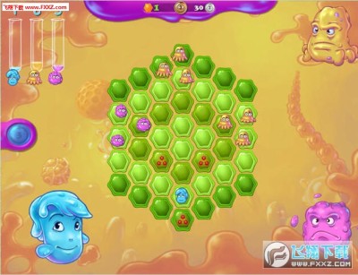 这款游戏的玩法与黑白棋有些类似,你代表蓝色的微生物,来将其他的微生物消除掉。不过黑白棋的玩法是各个棋子之前的连线消除,而这款游戏中则是以你的位置为中心,周围6格全部变成跟你一样的颜色。想要快速的赢得胜利,就要用最快速的办法来消灭掉所有其他颜色的微生物。如果最后没法消除完,那就看谁的数量最多就赢得最后的胜利。如果你移动的位置只有一格,那么将会分裂出一个新的微生物到相应的格子上,而不是自己移动过去。