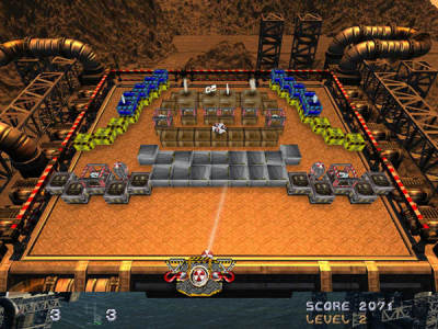 《核能弹球》顾名思义,是一款以核能为主题的打砖块游戏,玩家将会操纵一个画着放射性标着的挡板反弹一个画着放射性标着的小球,去击打各种画有放射性标志的方块。游戏同多数的打砖块游戏类似,道具有很多种类,分裂三个小球、导弹、磁铁、缩短或增长挡板等等,其中效果有好也有坏,这就需要你自己注意选择。