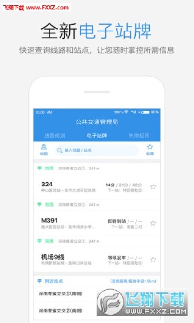 3,站点定位:通过GPS精确定位,能够判定使用者的具体位置,显示周边站点及该站点所有公交线路列表,更进一步轻松获取经过该站点线路公交车的实时状况;