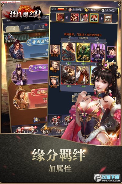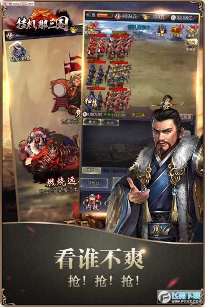 挂机那三国是首款三国题材放置类RPG游戏,通过挂机玩转三国,5分钟上手!10分钟掠夺!1小时大神!!!这是一款经典的三国题材游戏,玩法简单但不枯燥,拥有你耳熟能详的三国城池、武将,丰富的兵种策略玩法,经典的三国阵营对抗,百玩不厌的城池攻防,三国乱世等你争雄。