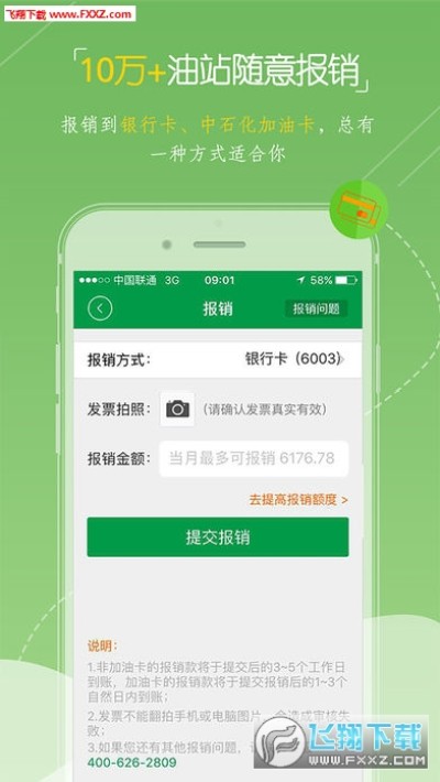 5、全面支持报销到银行卡、中石化加油卡,报销方式随意选择