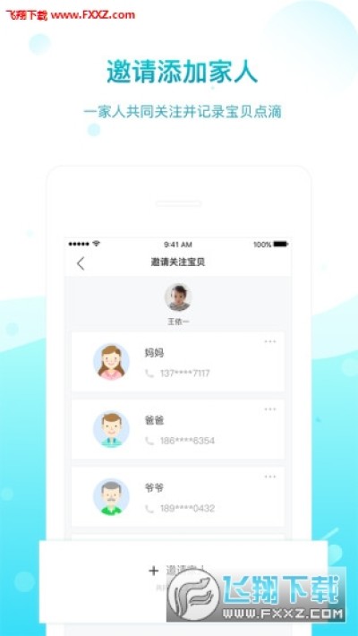 实时同步:邀请更多家人关注,实时记录宝贝成长