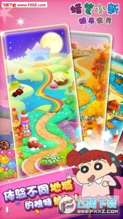 《蜡笔小新糖果世界》是一款以经典动漫蜡笔小新改编而来的休闲类手机游戏。在游戏中有着动漫风格的场景,以及有趣简单易上手的玩法,同时还能让你体验不一样的休闲模式,展开一场新世界冒险之旅。