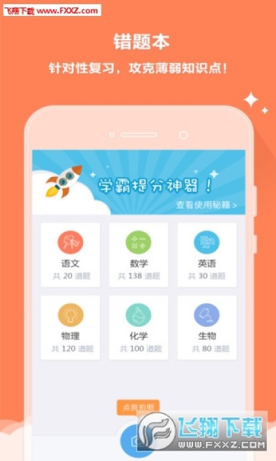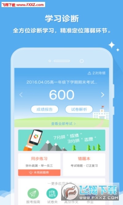 3.精选应用,快速提分 — 试卷夹:妈妈再也不担心我丢试卷了;错题本:错题掌握成学霸。高分作文:让作文得高分!