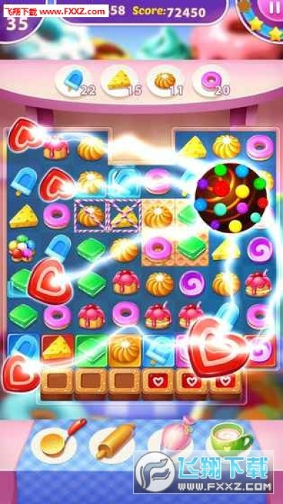 切换和匹配饼干甜品,尽可能在甜馨甜点饼干世界多多的收集这些美味!