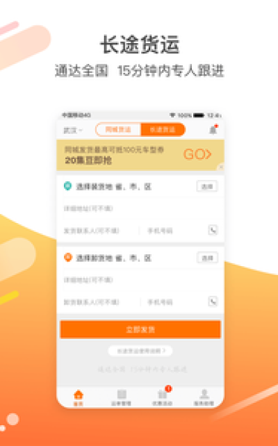 一键下单拉货,快速智能匹配,在线支付秒交易,货运服务随叫随到。