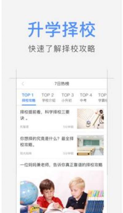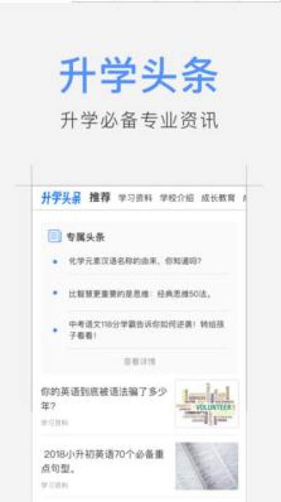 升学头条是一款为中小学家长精心打造的个性化资讯和知识社区的教育产品,为0-18岁孩子家长提供丰富的个性化教育资讯,并为家长提供相互沟通交流的教育知识社区。