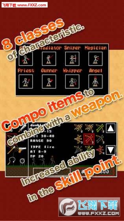 使用物品升级你的武器在8种不同类型的职业。把你的经验点提升到你的属性并创造你自己的勇士!