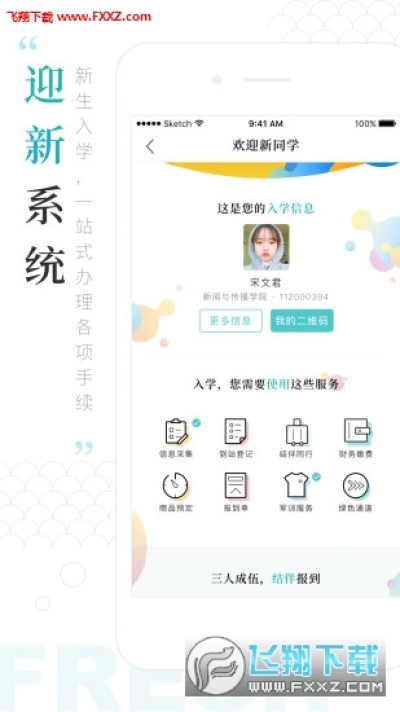 从收到录取通知书开始,在线完成报到流程:信息采集、到校登记、签到办理、物品领用、财务缴费查询,一站式办理新生入学各项手续