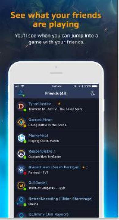 战网app是官方推出的让喜欢玩这家公司各大游戏的小伙伴们能够更加方便的交流沟通的应用软件,聊天界面设计的也非常的出色,你还可以看到你的好友此刻在玩什么游戏,组团也非常的方便,用战网手机登录更加的方便,需要的小伙伴们快来下载这款软件体验一下试试吧