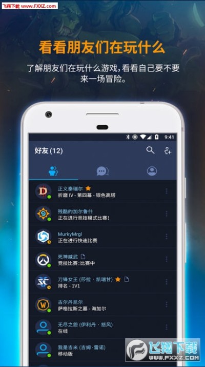 暴雪的战网手机应用程序可以让你和你的朋友保持联系。和朋友聊天,看看他们在玩什么游戏,并在你的移动设备上添加新游戏。