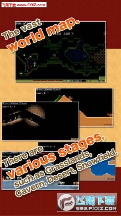 这是一个简单的动作RPG。战斗的敌人巨大的地图,充满变数的,包括环境草原、溶洞、沙漠和雪地!