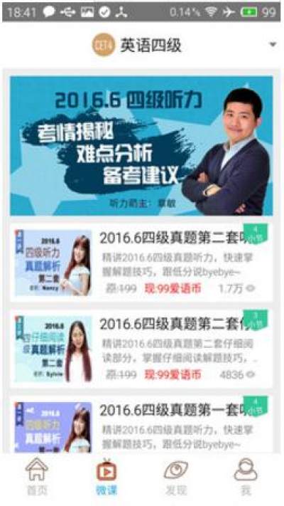 2、专业性:配套微课堂,新东方考试名师讲解四六级考试各题型;