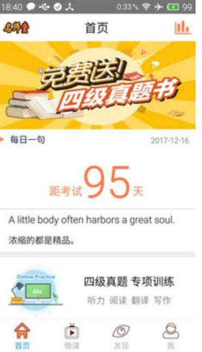 3、权威性:四六级名师的解析,专业名师为您归纳试题解析重难点。四六级考试出题老师,为您预测考试趋势;强大资讯功能--随时为您提供四级考试全方面的备考指南;