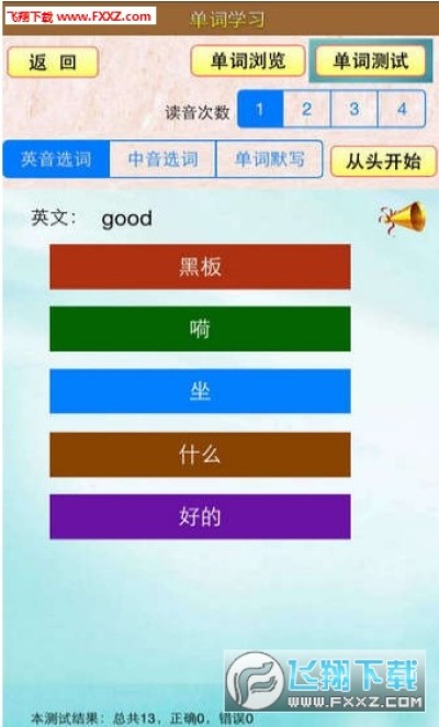 4.单词学习模式包括单词浏览、英文点读中文、中文点读英文、单词默写功能。