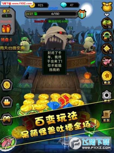 金币打怪兽是一款画面非常精美以怪兽为主角的射击类游戏,在游戏中玩家需要通过不断的打击怪兽来完成搜集金币的任务。