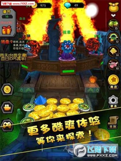 不过怪兽在游戏中是被攻击的对象,并且使用金灿灿的金币来攻击,玩家要在游戏里面通过不断的消灭怪兽来赢得多多的金币。