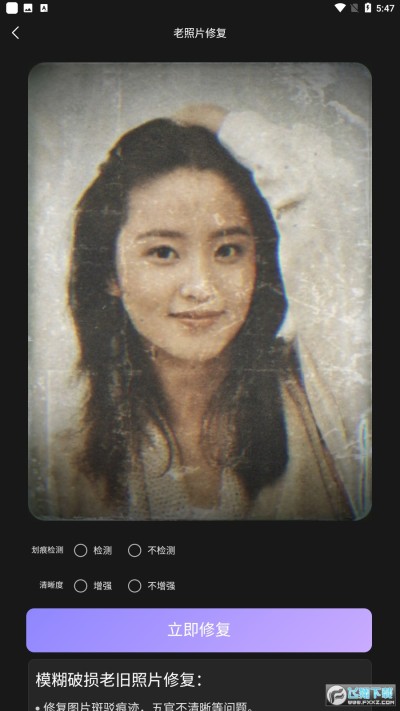 AI智能修复老照片是一款为旧照片提供有针对性修复服务的照片恢复处理工具软件,可以提高照片分辨率和画质效果,功能强大,基本满足照片修复管理的需要。AI一键修复旧照片是一种非常神奇的照片处理工具,它使用人工智能修复技术专门修复旧照片,从而提高照片的分辨率和图像质量。