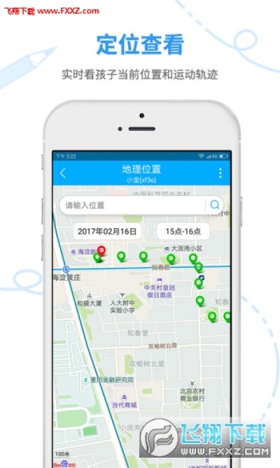 孩子的实时定位,记录孩子的活动范围,便于家长随时了解孩子所处位置。