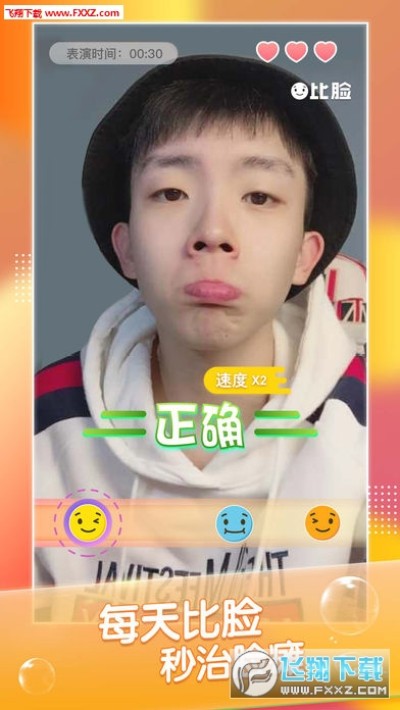 比脸app是一款趣味魔性娱乐软件,比脸app苹果版为用户提供一个好玩的脸部跳舞机,用户需要根据表情设定来完成各种表情,展现你的喜怒哀乐,快下载软件来挑战你的脸部表情包吧。