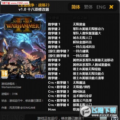 全面战争:战锤2 v1.0 十八项修改器,其主要的功能有无限资金、无限人口、科技解锁以及瞬间施法等等极为实用性的功能,让你能感受不一样的游戏激情与快感,有兴趣的小伙伴们可以来下载体验哦!