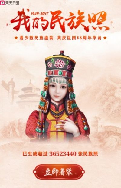 今天看到朋友圈有人发了自己的民族服饰照片,小编问朋友怎么制作的,原来是天天P图做的我的民族照特效生成软件,只需要大家上传自己的自拍照,选择喜欢的民族服装就能一键制作了,非常简单,需要的朋友可以试试哦。