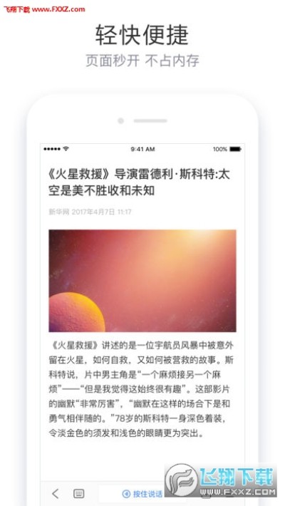 打开简单搜索,可以看到它那极简的主界面,内容显示区域+输入栏+标签按钮+选项按钮就组成了简单搜索的操作界面,开启时甚至连网页都没有自动加载,启动画面也没有,界面清爽无广告。安装包也只有26M,小巧玲珑。