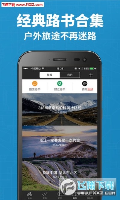 *从附近赛段、推荐路书下载热门赛段路书。