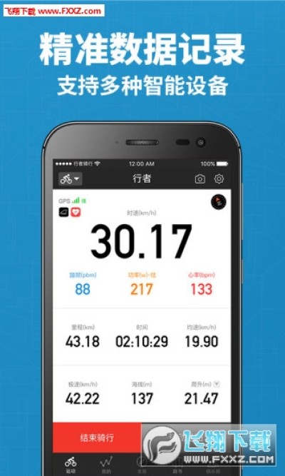* 支持连接蓝牙4.0及以上的蓝牙速度踏频器和心率计,数据可在首页实时显示